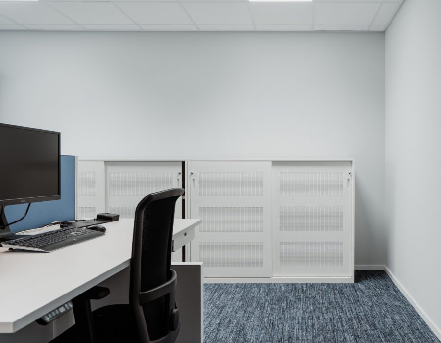 Het in 2017 ontworpen concept is verder aangepast en uitgewerkt voor het nieuwe pand. Met speciale aandacht voor de zit/sta werkplekken en de verlichting hiervoor.